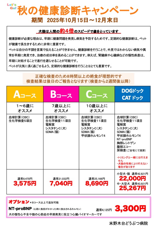 秋の健康診断キャンペーン