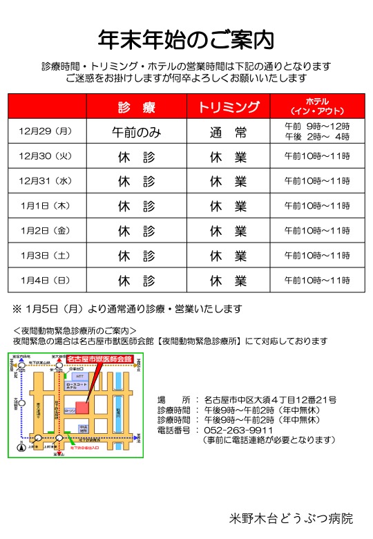 年末年始のお知らせ